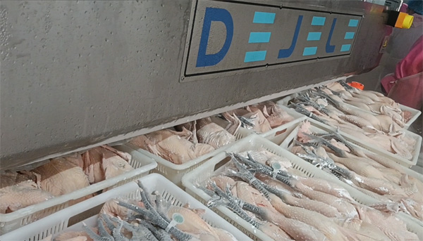 在追求新鲜与健康的饮食风潮中,液氮速冻白条鸡凭借其独特的保鲜技术,正在引领一场食品储存与消费方式的革命。借助德捷力液氮速冻机,我们得以将美味与营养锁住在-196℃的低温世界里,无需担心食材的新鲜度和口感流失。